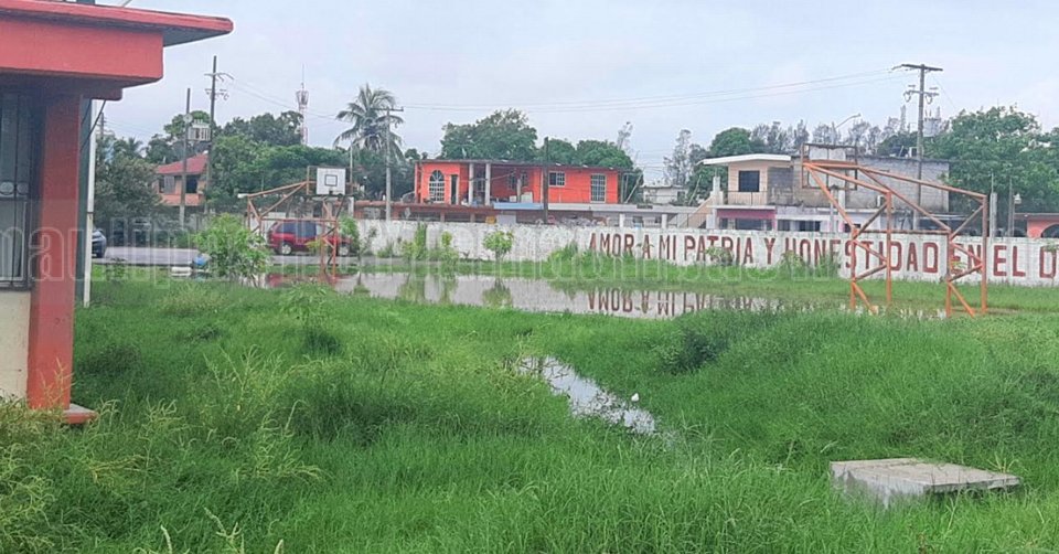 Lluvias afectan a escuela secundaria de Tampico con encharcamientos