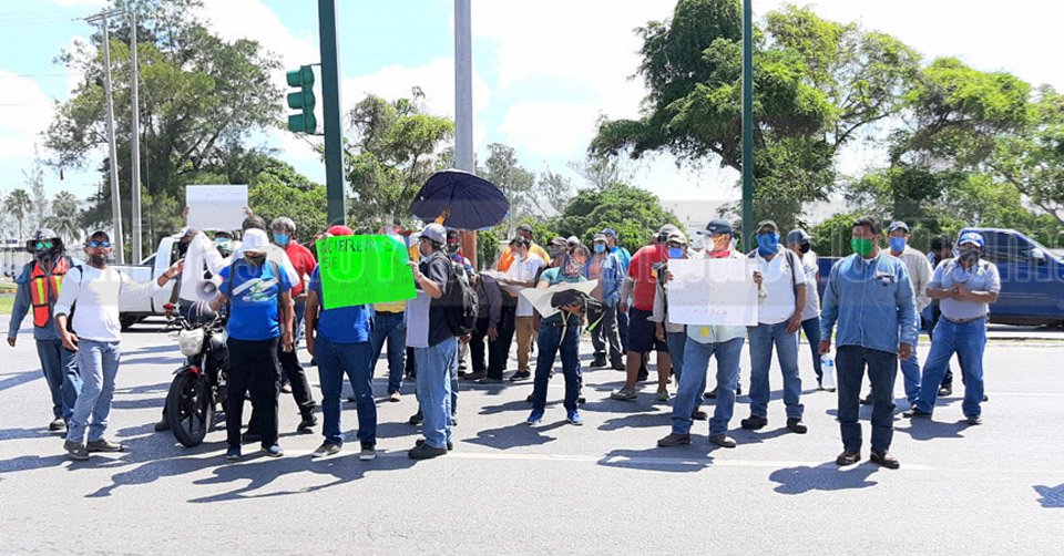 Obreros bloquean bulevar de Tampico para exigir oportunidad de trabajo