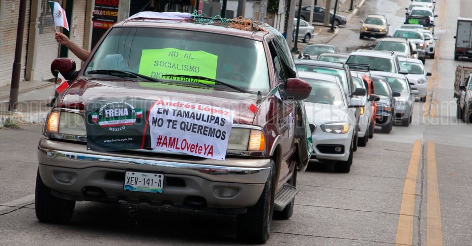 Con el hashtag #AMLOVeteYa, protestan contra AMLO en Tampico