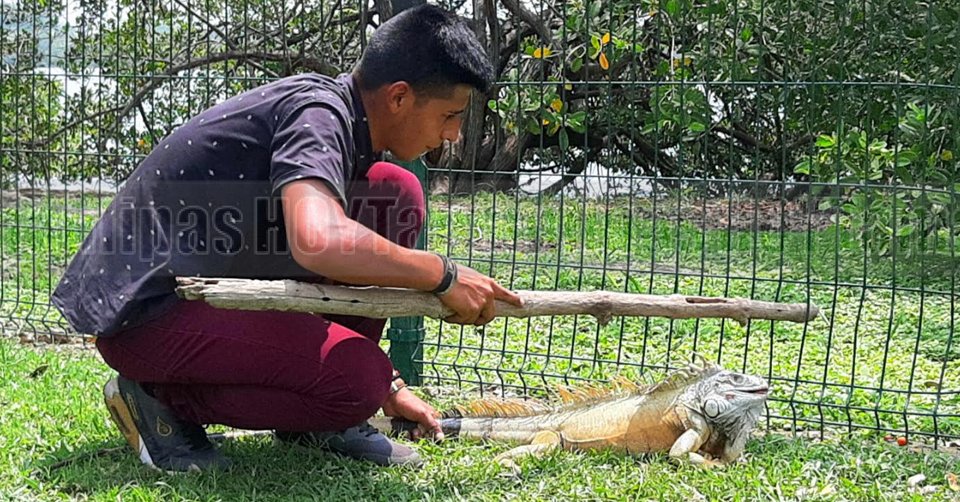 Rescatista en parque de Tampico es héroe de las iguanas que mueren en alambrada