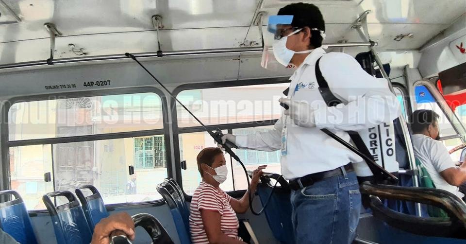 Con operativo, Transporte Público sanitiza unidades de pasajeros en Tampico