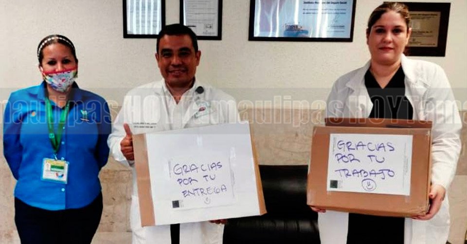 Apoya Olga Sosa con gel antibacterial a hospitales de Tampico
