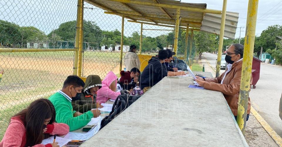Alumnos de Telebachillerato en Altamira toman clases en campo de béisbol