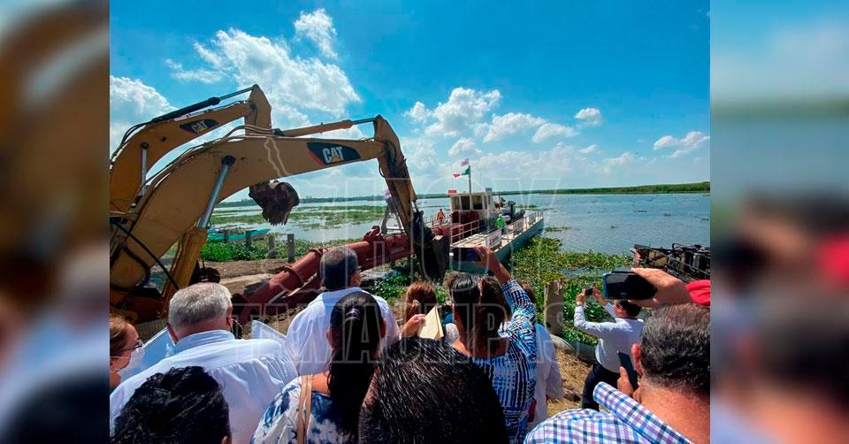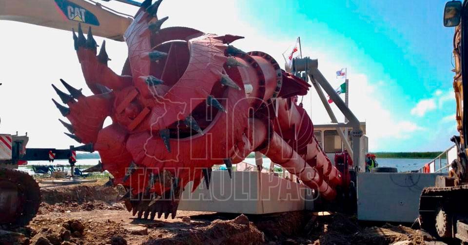 Realizan botadura de draga para rescatar a la Laguna del Champayán en Altamira