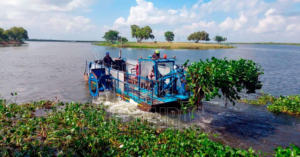 Retiran lirio acuático de la Laguna del Champayán en Altamira