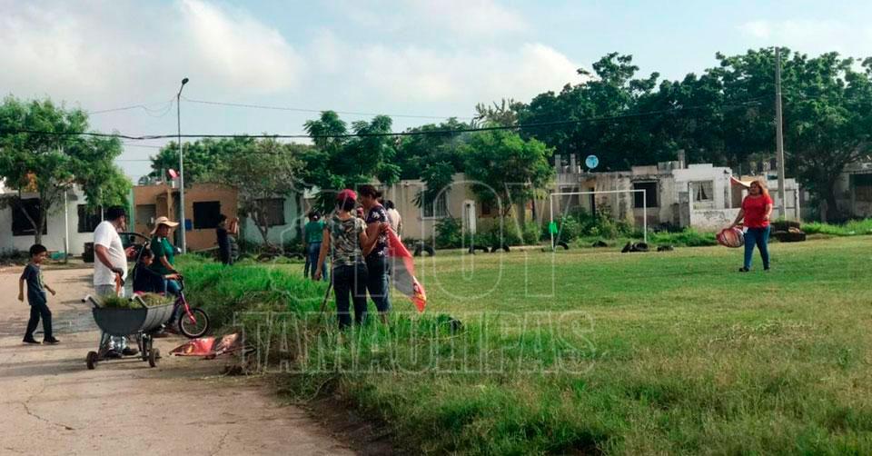 Limpian áreas verdes en colonias de Altamira en representación de Armando Martínez