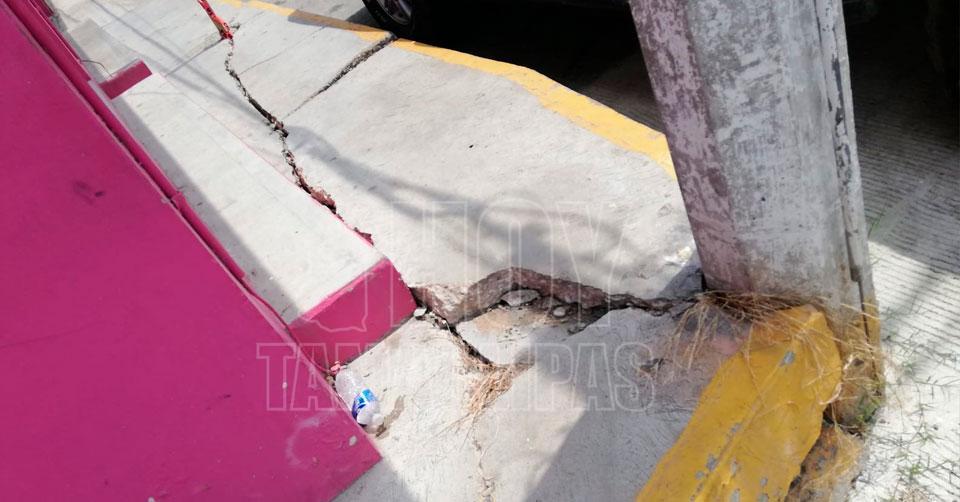 Empresa contratada por Comapa destroza banquetas en el centro de Altamira