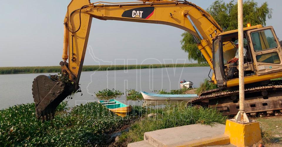 Caminan hasta medio kilómetro entre el lodo en Laguna del Champayán en Altamira