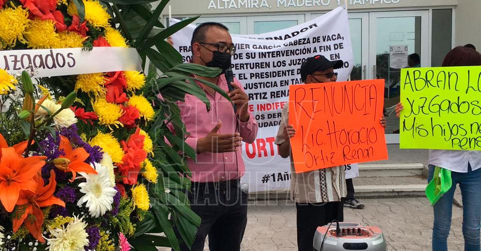 Con flores y un pastel, abogados protestan a un año de tener cerrados los juzgados en Altamira