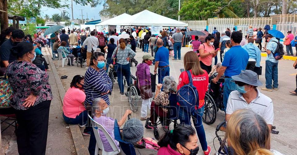 Adultos mayores llegan solos y en ayunas por su vacuna en Altamira