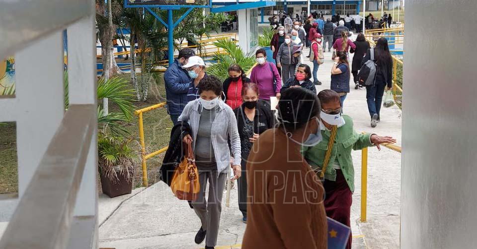 Abuelitos llegan a las 5 de la mañana para recibir sus vacunas anti Covid-19 en Altamira
