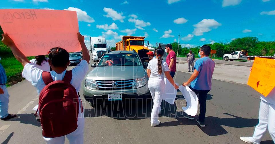 "Héroes de la salud" bloquean carretera en el sur de Tamaulipas