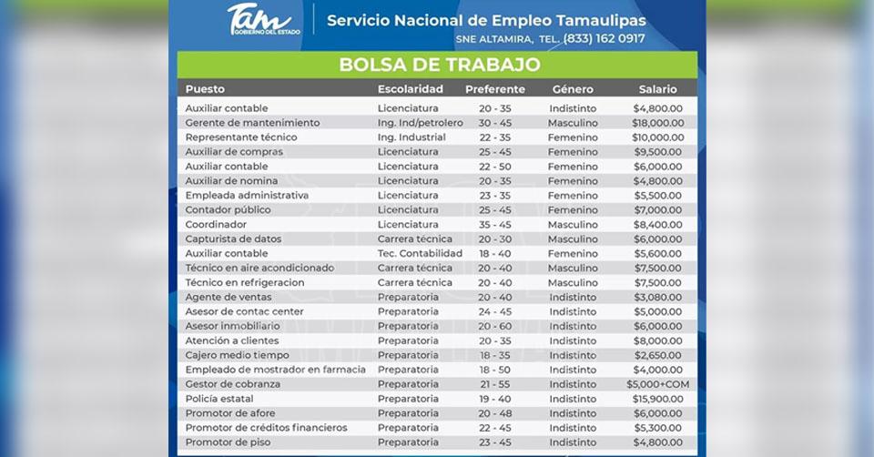Abren 550 vacantes en Altamira con sueldos hasta de 18 mil pesos