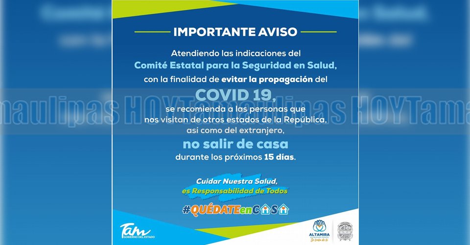 Piden en Altamira que visitantes y paisanos se aíslen 15 días