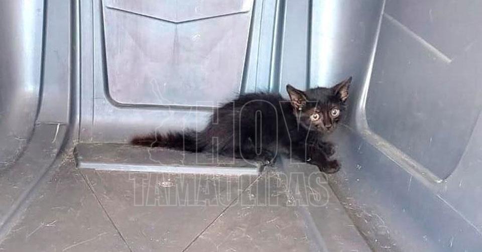 Rescatan a un gatito atrapado en canal a cielo abierto en Altamira