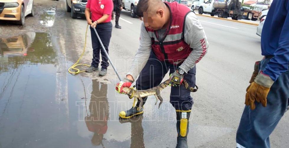 Crías de cocodrilos siguen en drenes pluviales de Altamira