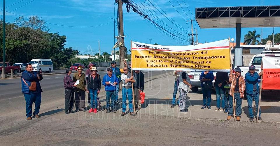Marchan en Altamira para exigir pago por privatización de Hules Mexicanos