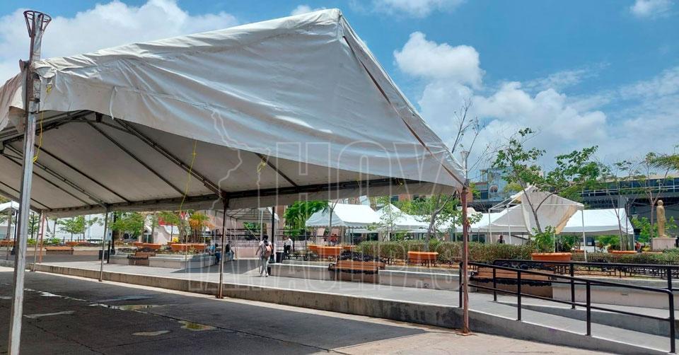 Olvidan toldos en la Plaza Isauro Alfaro de Madero