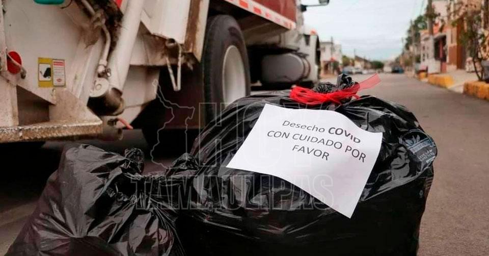 Residentes de Madero coloca moños rojos a desechos de pacientes con Covid-19