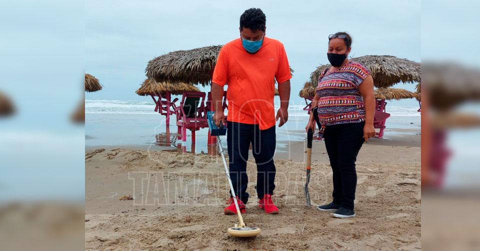 Con los "fosfo fosfo" regios buscan tesoros en la Playa Miramar