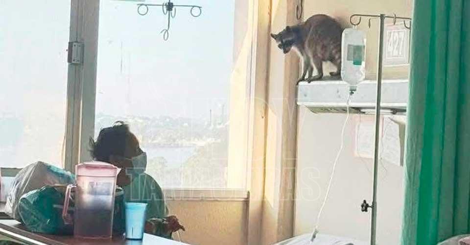 Pacientes conviven con mapaches dentro del IMSS de Ciudad Madero