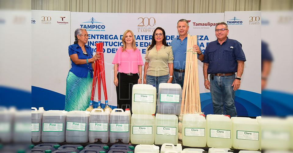 Entrega Chucho Nader material y equipo de limpieza a escuelas de Tampico