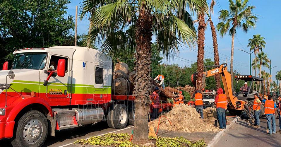 En Tampico: Instalan nuevas palmeras en el Bulevar López Mateos