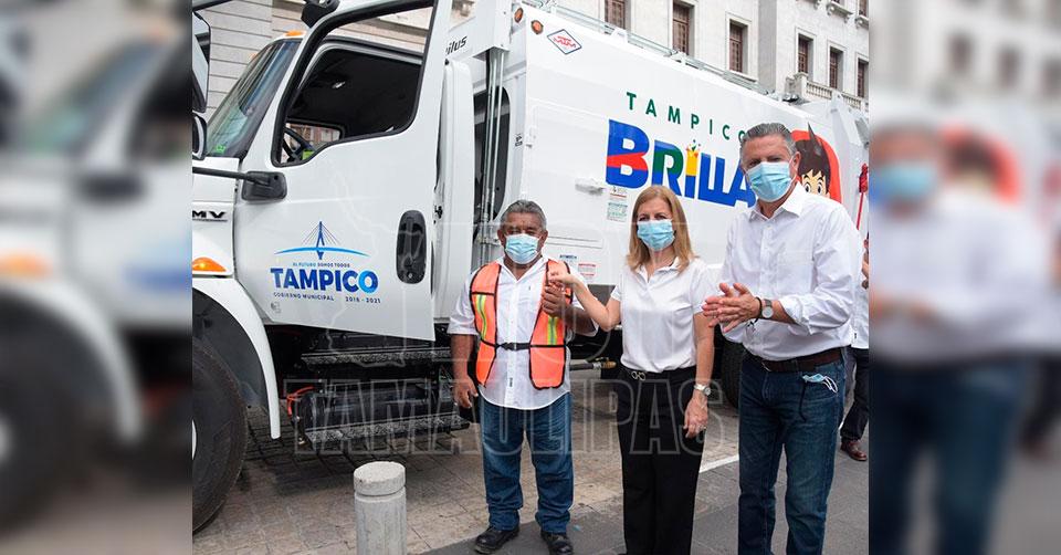 En Tampico: Entrega Chucho Nader tres modernos camiones recolectores de basura