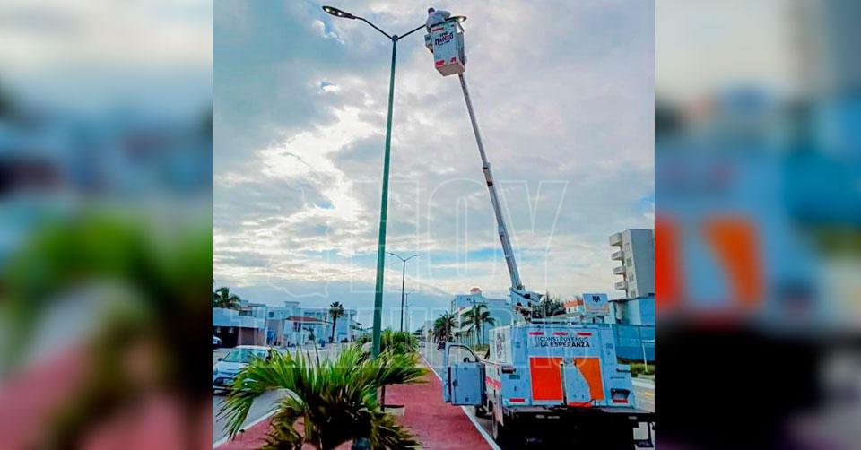 Refuerza gobierno de Madero los trabajos de alumbrado público