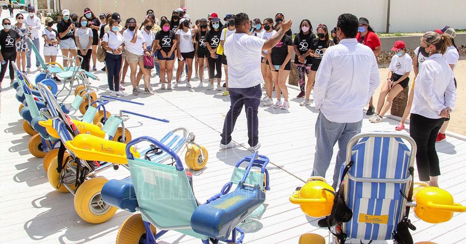 Visitan estudiantes de la UNE instalaciones de playa Incluyente en Ciudad Madero