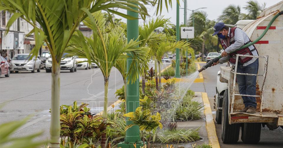 Refuerzan conservación de camellones principales en Ciudad Madero
