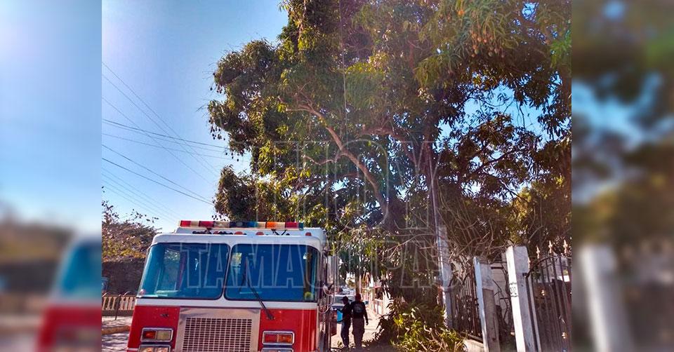 Protección Civil de Madero retira ramas de árboles sobre cables de electricidad