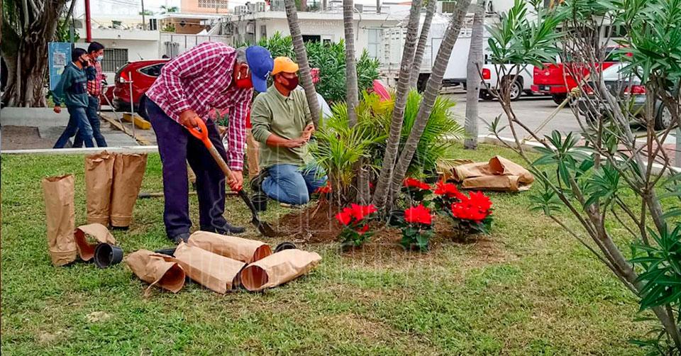 Adornan con nochebuenas camellones de Ciudad Madero