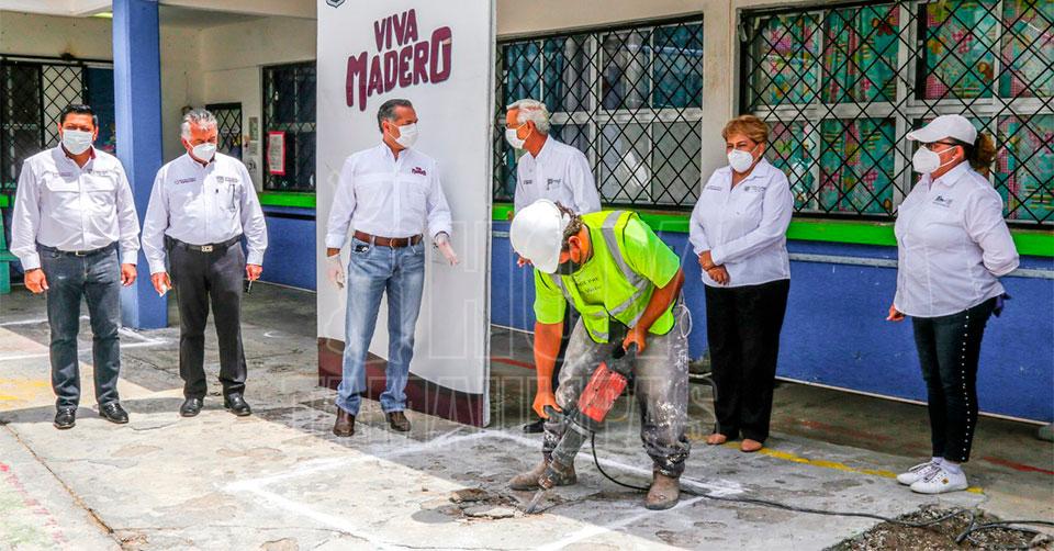 Adrián Oseguera encabeza obra pública en beneficio de la comunidad escolar