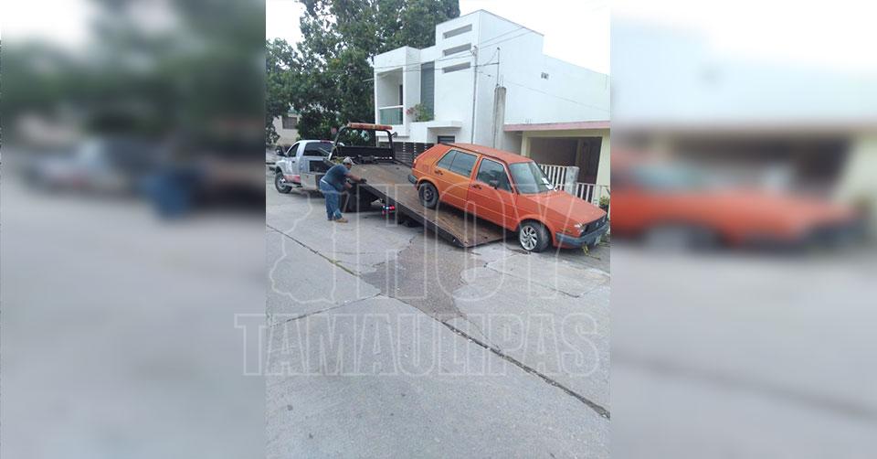 En Ciudad Madero: Continúa operativo retiro de autos chatarra en vía pública
