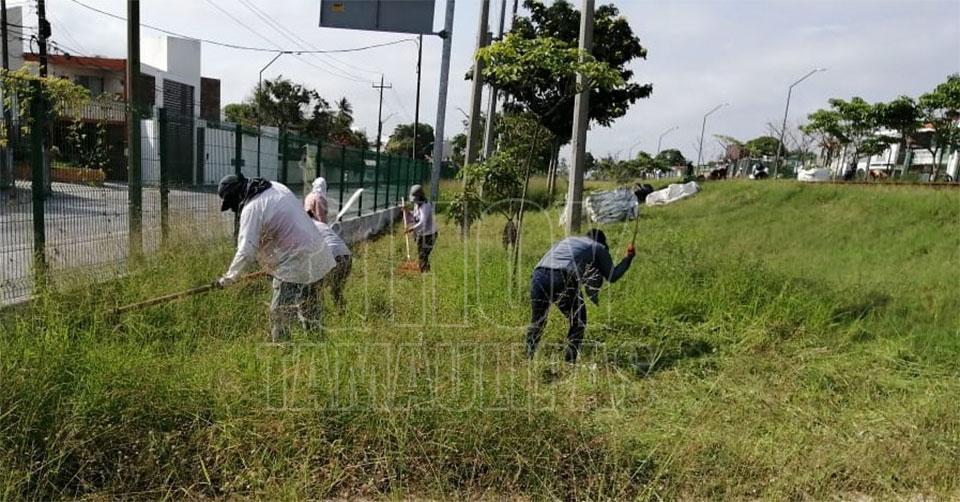 Ciudad Madero da mantenimiento a espacios verdes de avenida Monterrey