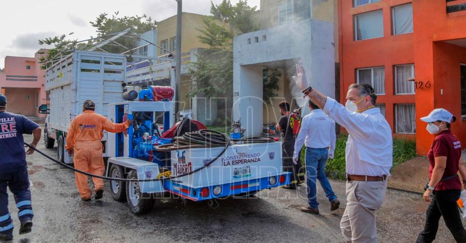 Adrián Oseguera da certidumbre a más de 170 mil maderenses con desinfección de colonias