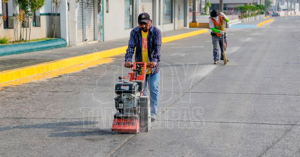 Pintan líneas viales en principales avenidas de Ciudad Madero