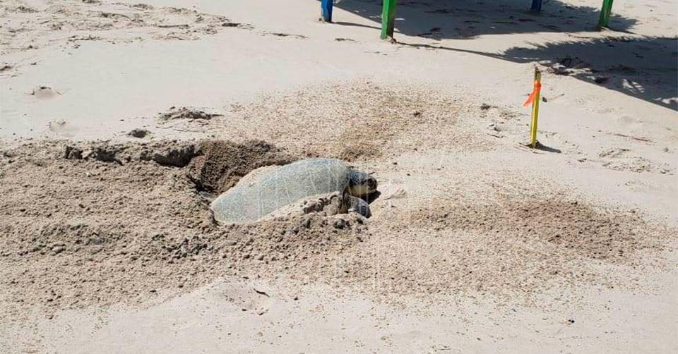 Vigilan elementos de Protección Civil arribo de tortuga lora a Playa Miramar