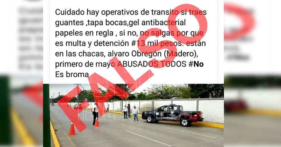 Falso que multen por no traer cubrebocas en Ciudad Madero