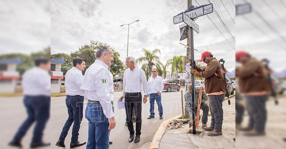 Supervisa Adrián Oseguera instalación de modernas nomenclaturas en Ciudad Madero