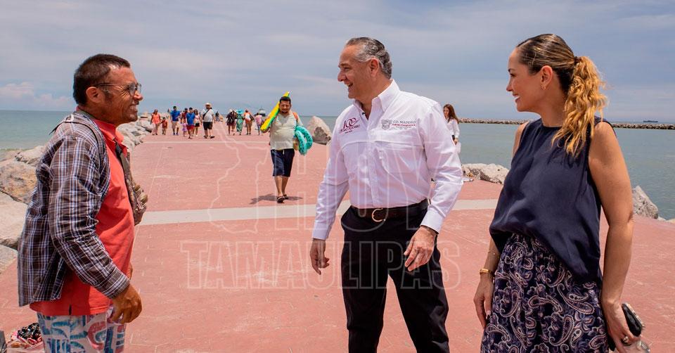 Saluda alcalde de Madero a turistas durante recorrido en Playa Miramar