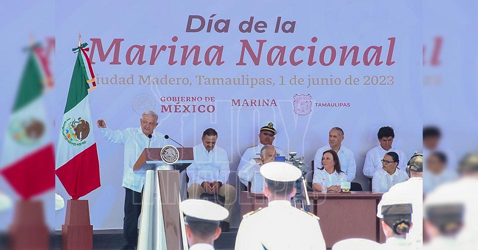 Adrián Oseguera acompaña a López Obrador en la celebración del Día de la Marina