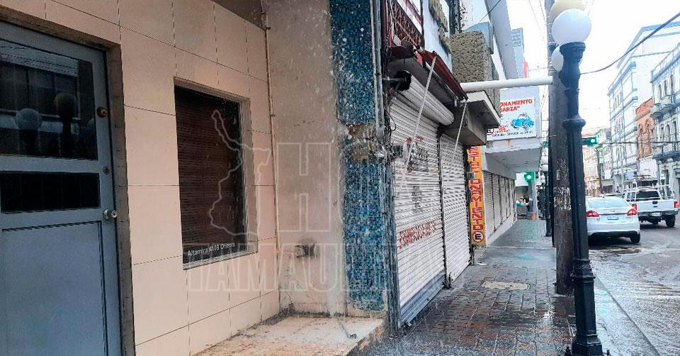 Roban medidor en el Centro Histórico de Tampico; se desperdicia el agua