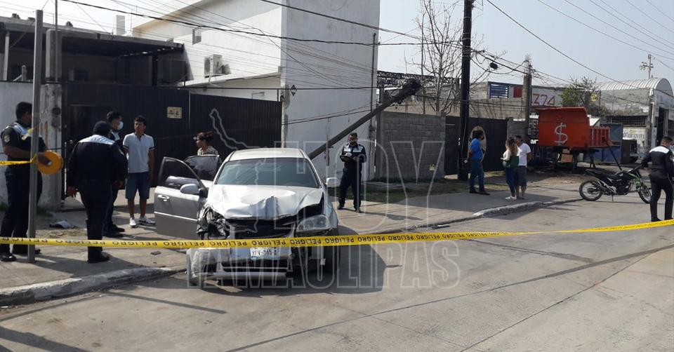 Alocado conductor se lleva a motociclista, camioneta y poste en Tampico