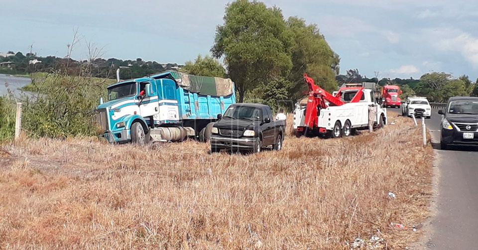 Camión de volteo casi se va a laguna en Tampico