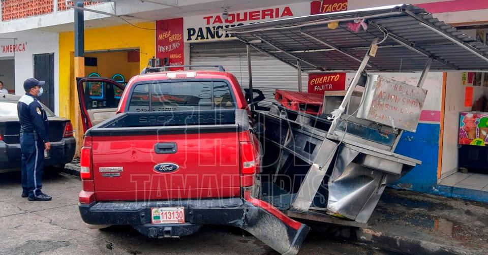 Destruyen carro de tacos tras fuerte choque en Tampico