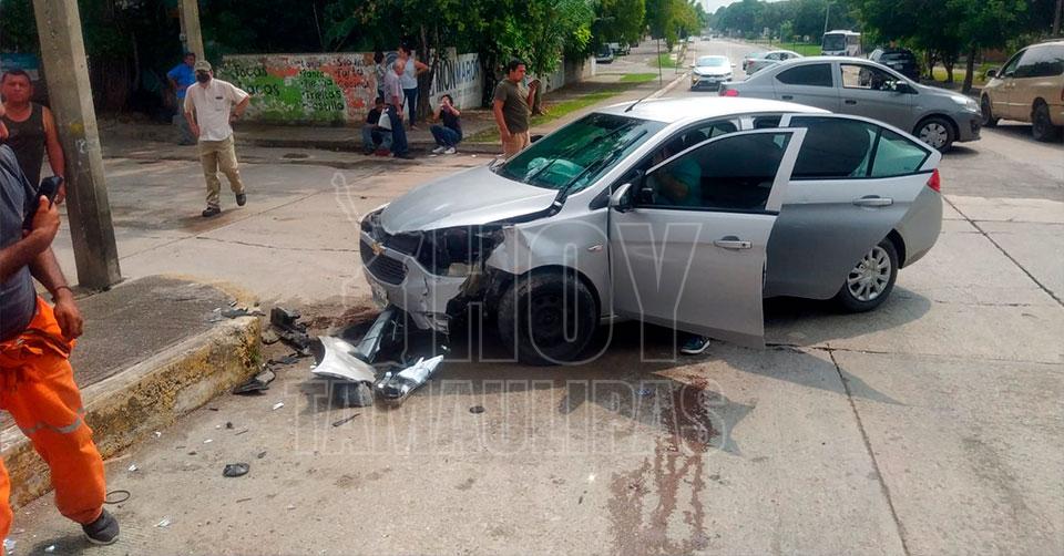 Choca de frente a carro de ruta lleno de pasaje en Tampico