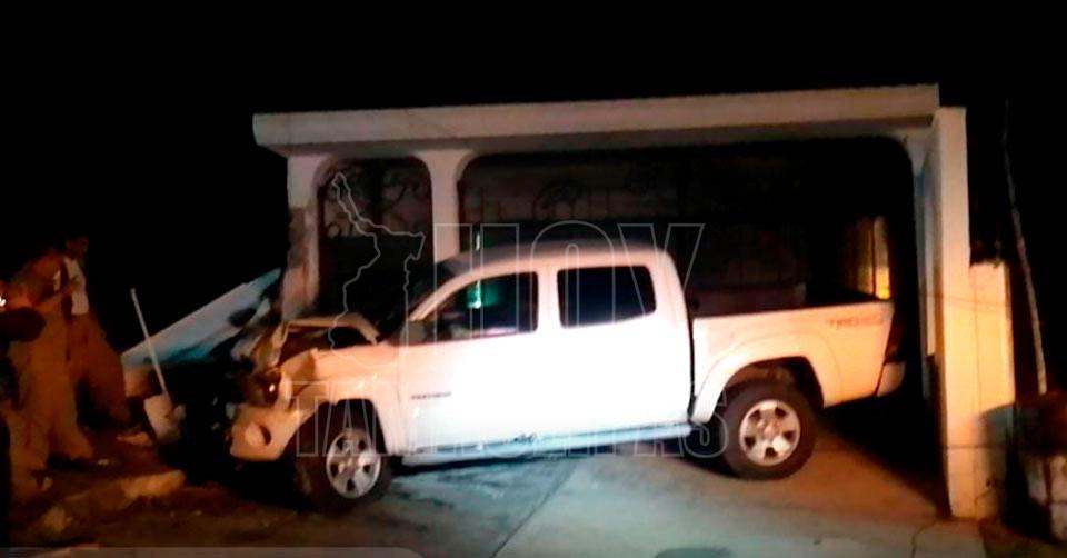 Ebrio joven se salva de milagro al choca y destrozar su camioneta en Tampico