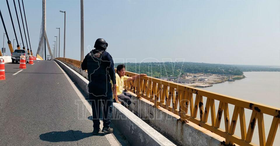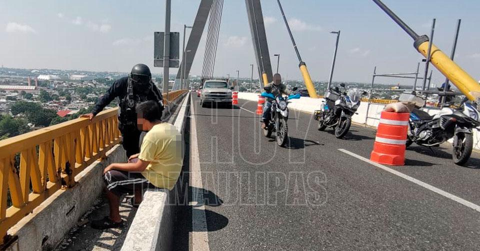 Jovencito se quería lanzar del Puente Tampico y "polis" lo rescatan